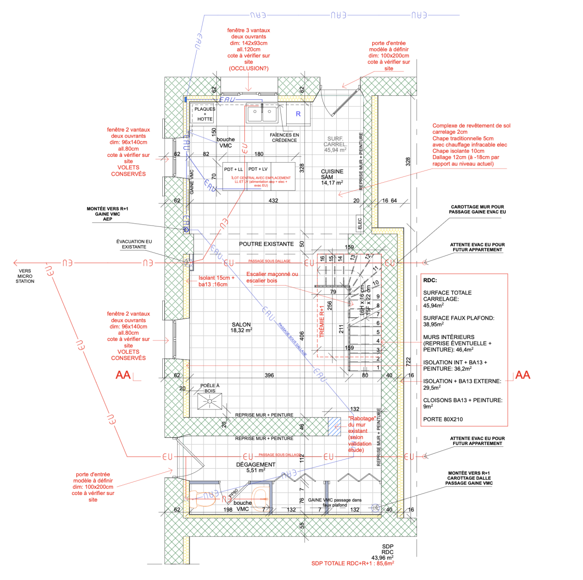 Projet d'aménagements intérieurs (75m2 habitables) et extérieurs respectant le bâti traditionnel Design, dossier d'autorisation de travaux