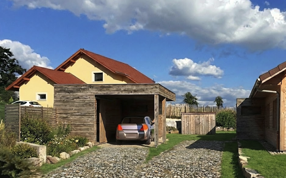 Création d'un sas d'entrée et d'une micro architecture à usage de car port et de stockage de matériel de jardinage Design, dossier d'autorisation de travaux
