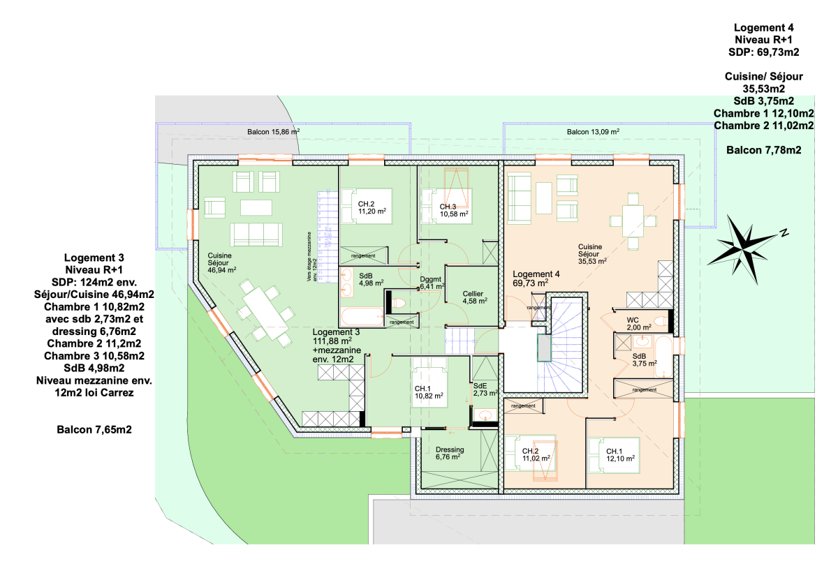 Ensemble de logements et local commercial développé en collaboration avec Ubaldo Martella Design et dossier d'autorisation de travaux: