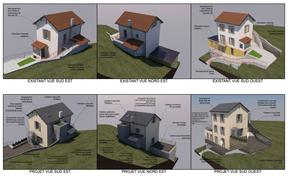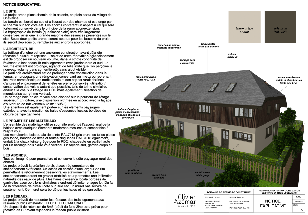 Réhabilitation et extension d'un lien d'hébergement en un ensemble de trois logements Design, dossier d'autorisation de travaux