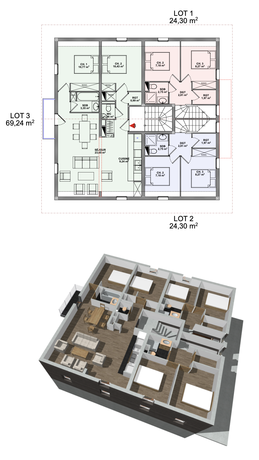 Création de deux immeubles de 8 logements Design: Olivier Azémar Projet non réalisé